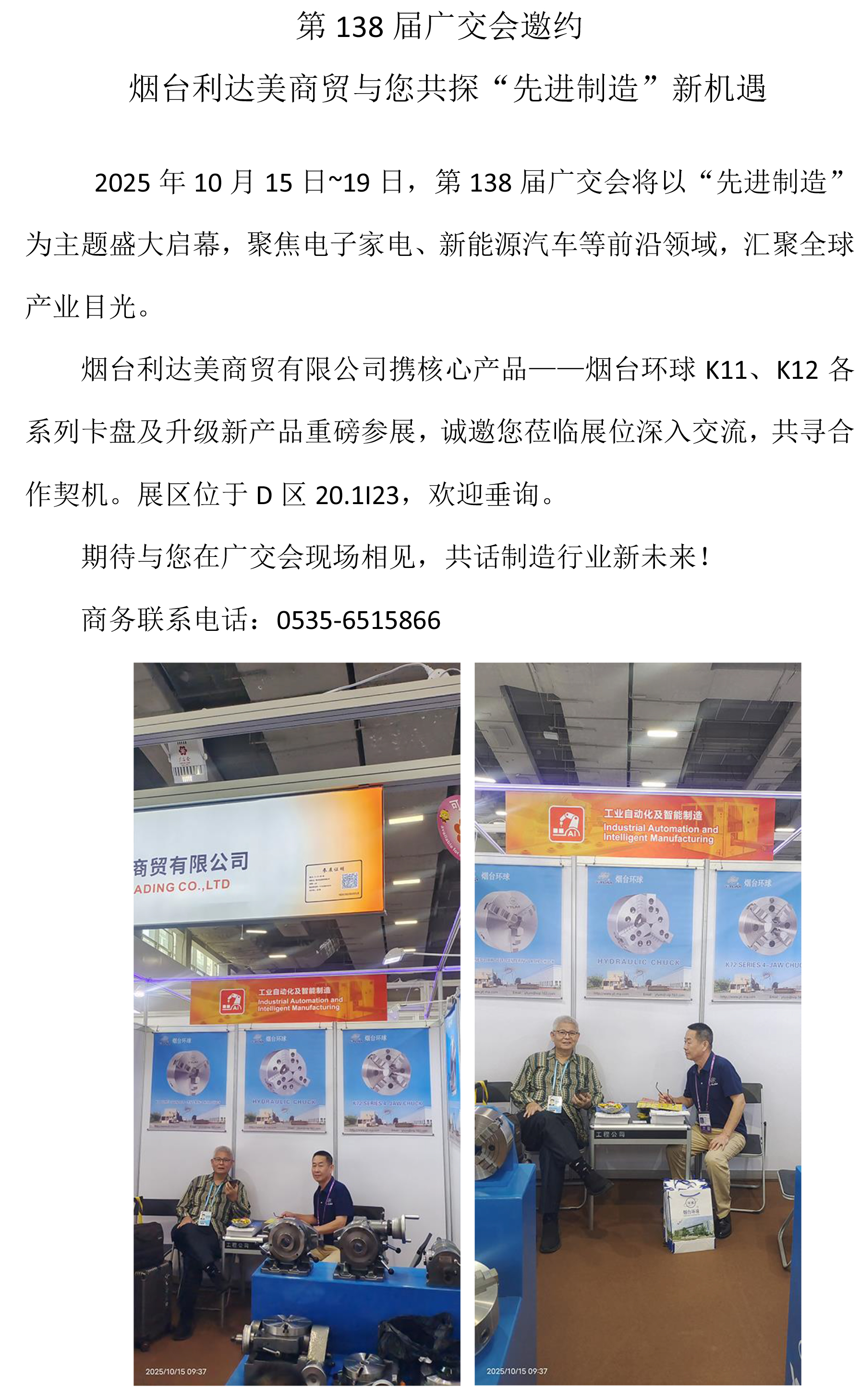 第138屆廣交會邀約 煙臺利達美商貿(mào)與您共探“先進制造”新機遇